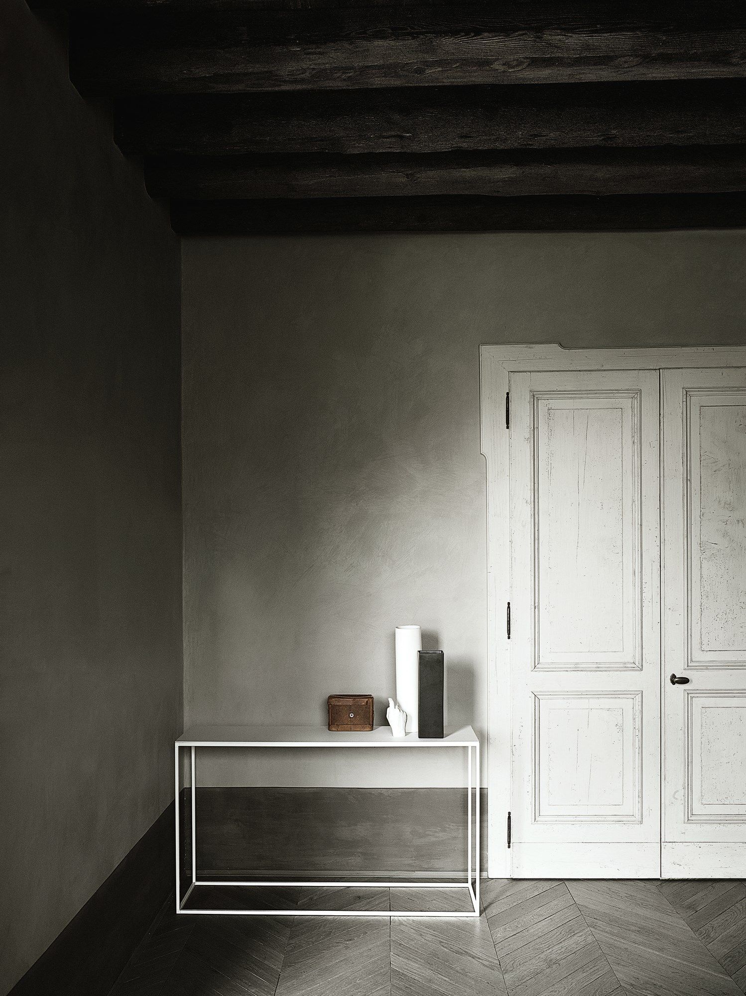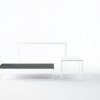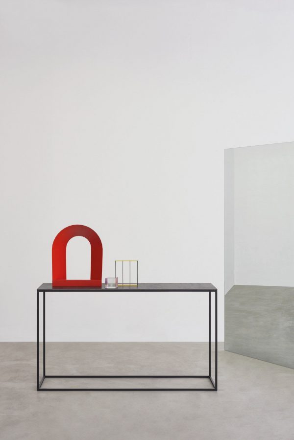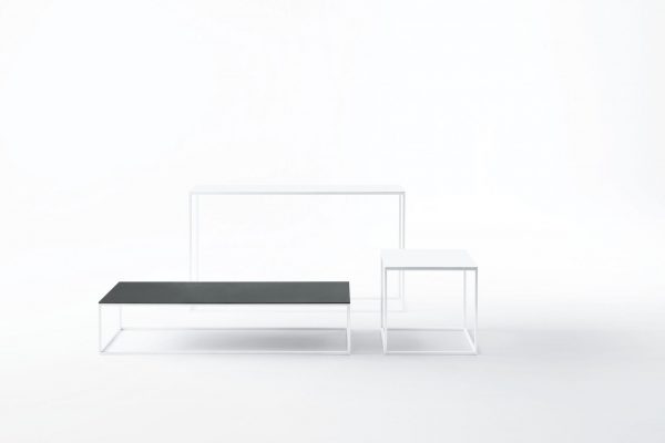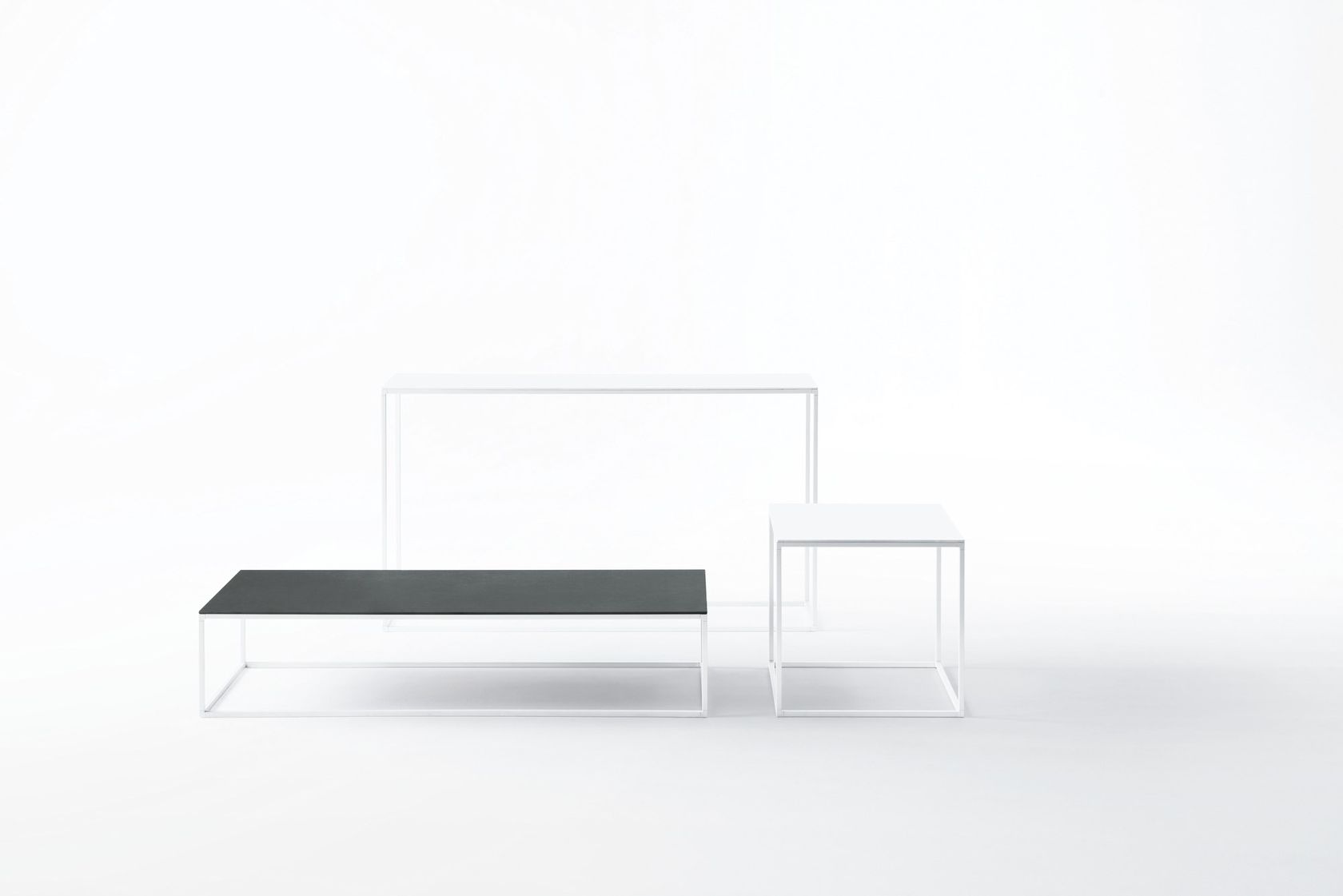 Небольшие консоли с неразборной стальной рамой, сечением 15×15 мм, и литым алюминиевым верхом. Рама с матовой отделкой в любой цвет RAL. Возможна замена на керамические столешницы.