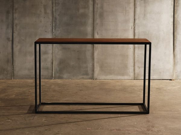Консоль SKIN изготовлена из металла и патинированной кожи. Каркас из металла под порошковой краской. Столешница из кожи.