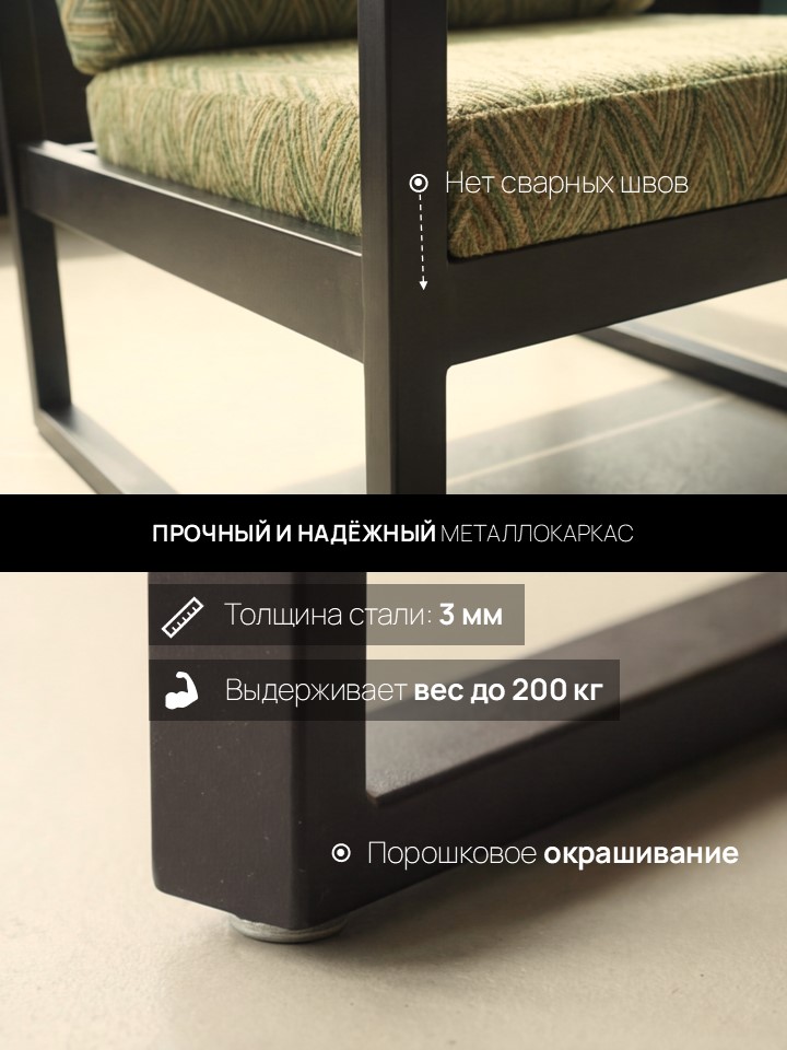 Вечный каркас: Из металла покрытого порошковой краской черного цвета. Мы настолько уверены в его прочности, что даем гарантию на каркас 30 лет