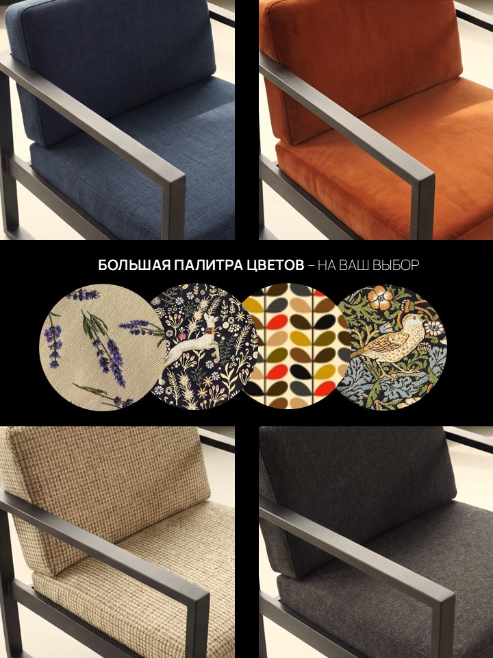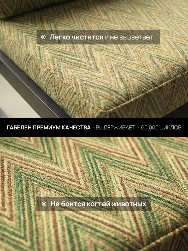 Обивка: Мягкие подушки сиденья и спинки выполнены из гобелена с характерным геометрическим принтом в природной цветовой гамме