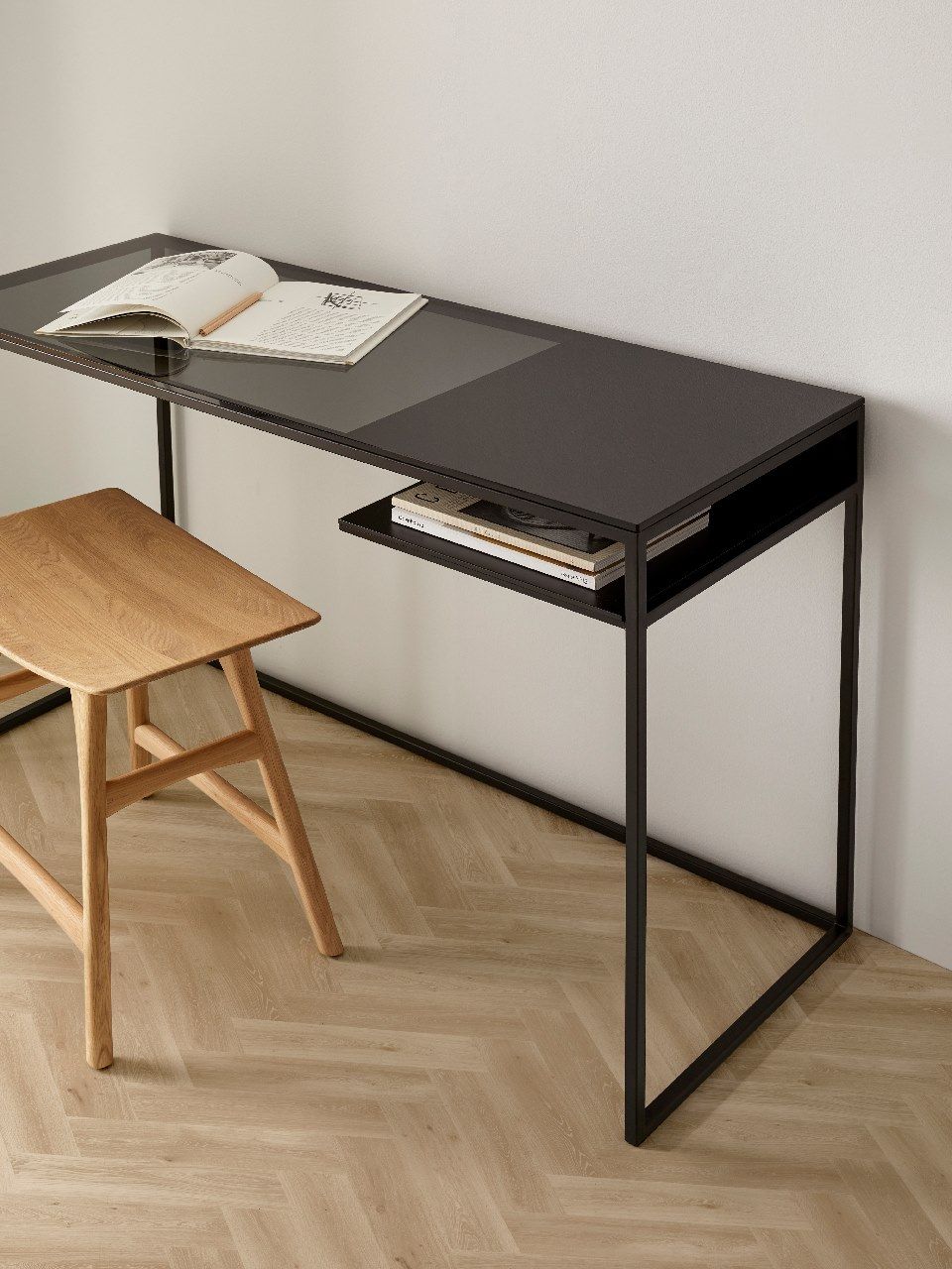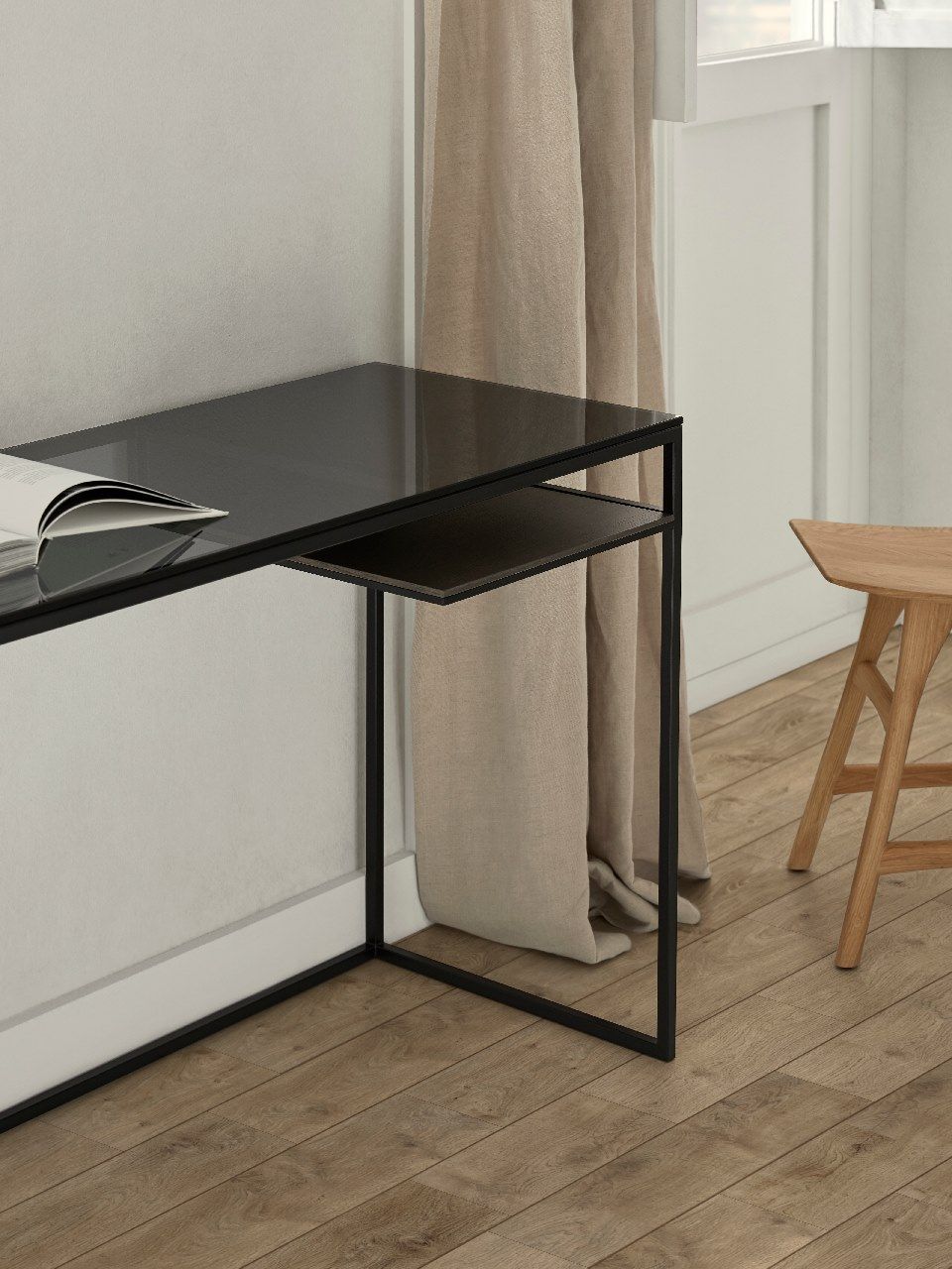 Стол GLASS это удобный рабочий стол, который идеально подойдёт для любого интерьера. Верх: Дымчато-серое закаленное стекло. Полка из МДФ под дуб или орех.