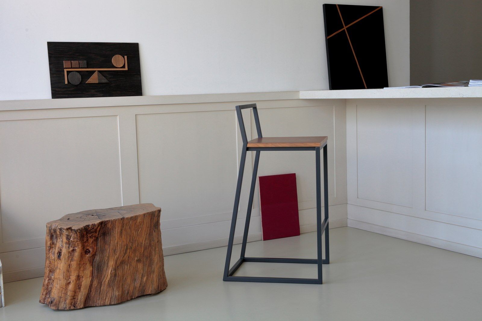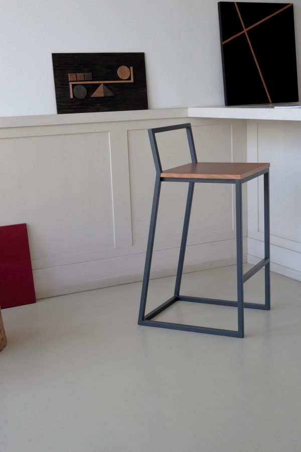 OREX — высокий металлический стул с ореховым сиденьем и рубленными линиями. Идеально подойдёт для острова или полуострова для кухни в современном стиле. Индустриальный стиль, воплощенный в металлическом каркасе с черной отделкой, уравновешивается органичным стилем квадратного сиденья, выполненного из ореха или дуба. Сам стул может быть покрашен в следующие цвета: бронза, томат, белый или черный.